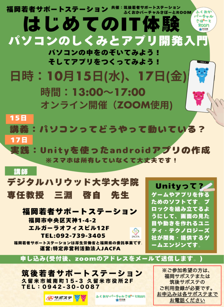 10/15(水)と10/17(金)に筑後サポステ・福岡サポステの共同開催形式でスキルアッププログラムを開催します!